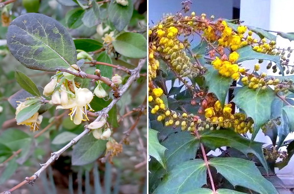 Цветут кусты с декабря по март, а потом на них образуются красивые синие ягодки. Цветки приятно пахнут, и на них, пока было тепло, а также на других цветущих растениях летали какие-то полосатые насекомые — может, маскирующиеся под пчел мухи. А, может, и пчелы, удрали из улика.