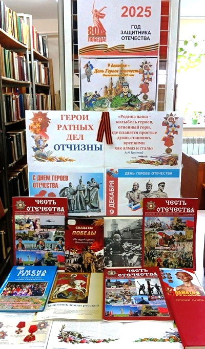 К этой знаковой дате, в рамках Года Защитника Отечества и 80-летия Великой Победы симферопольская библиотека-филиал №4 им. М.М. Коцюбинского приурочила книжную выставку «Герои ратных дел Отчизны», цитатой которой стали гордые строки русского и советского поэта Алексея Николаевича Толстого: «Родина наша – колыбель героев, огненный горн, где плавятся простые души, становясь крепкими как алмаз и сталь».