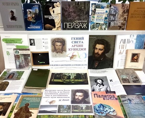 Информационным сопровождением вечера стала книжная выставка «Гений света Архип Куинджи», включившая краеведческие издания из фонда библиотеки.