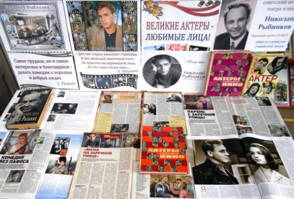 Информационным сопровождением мероприятия стала книжная выставка «Великие актеры, любимые лица – Николай Рыбников».