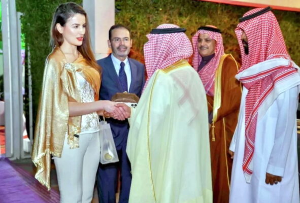 Скандал эта послица устроила довольно быстро, когда пришла на прием в посольство Саудовской Аравии на высоких каблуках, в оттягивающих лосинах и с таким же обтягивающим верхом.