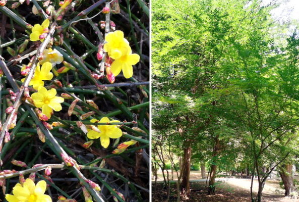 По всему городу покрыты желтыми яркими звездочками и кустики жасмина голоцветкового.