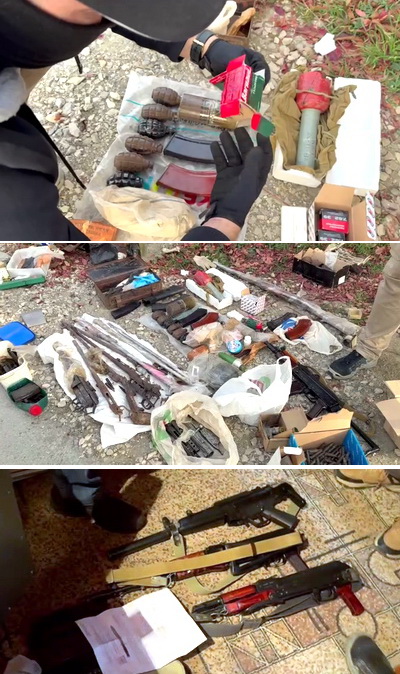 Кроме того, сотрудниками ФСБ в ходе проведения обследования помещения изъято 3 единицы огнестрельного оружия украинского производства на базе автомата Калашникова, 1 карабин GSG-5, 1 ППШ (пистолет-пулемет системы Шпагина), 16 составных частей огнестрельного оружия (ударно-спусковые механизмы, стволы, ствольные рамы и прочее), патроны различного калибра свыше 200 единиц.